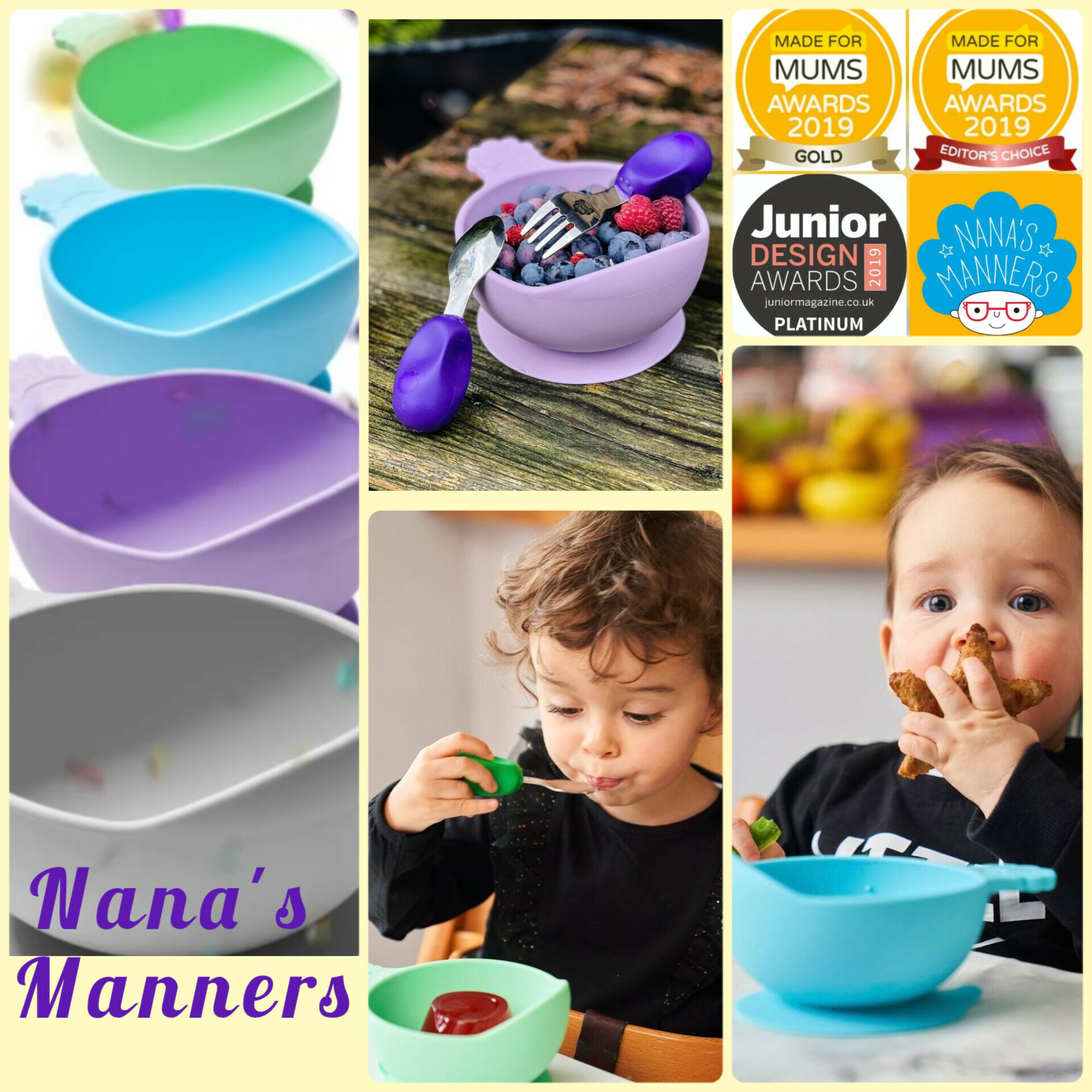 英國Nana’s Manners國民兒童餐具 -嬰幼兒矽膠防滑吸盤碗
