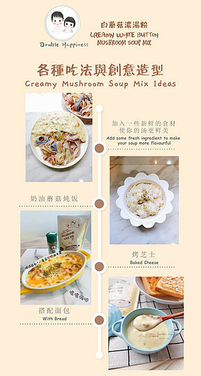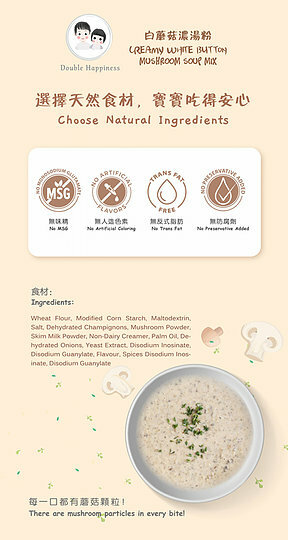 麥芽糊精,小麥麵粉,鹽,玉米澱粉,植脂末(含有奶製品), 乳糖(含有奶製品), 酵母抽出物,關華豆膠,蘑菇粉,棕櫚油, 脫水洋蔥, 調味料(含有奶製品),香辛料, 肌苷酸二鈉,鳥苷酸二鈉。